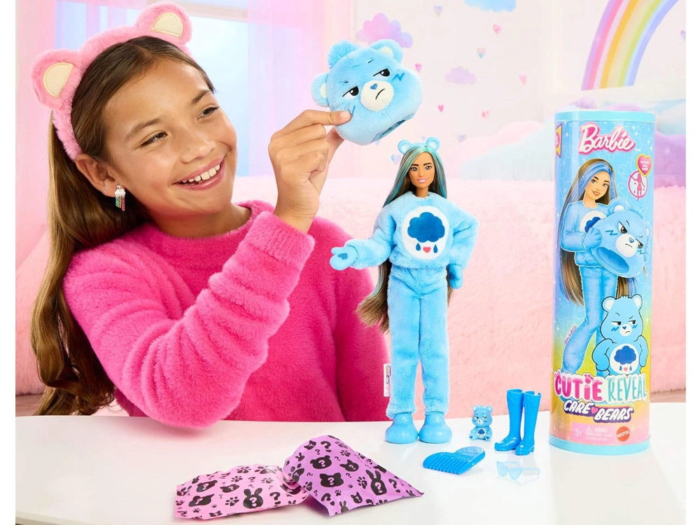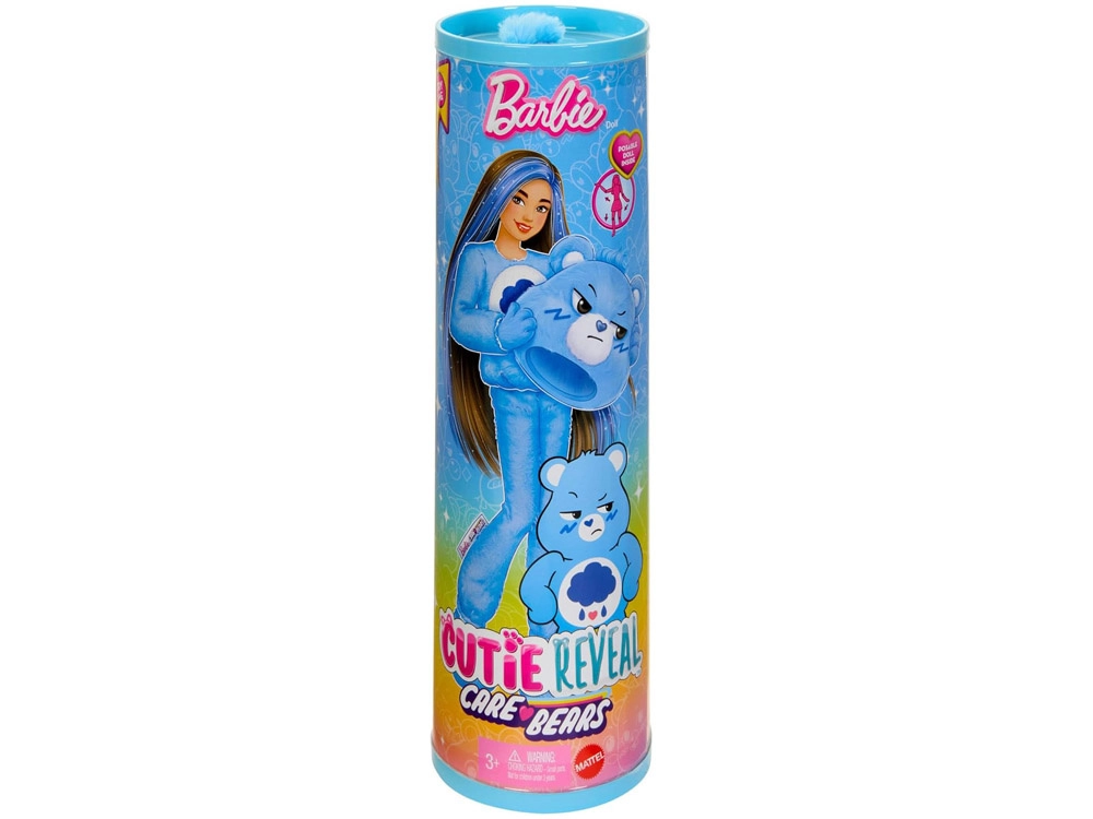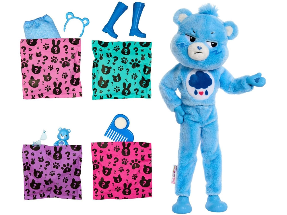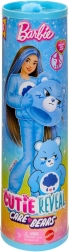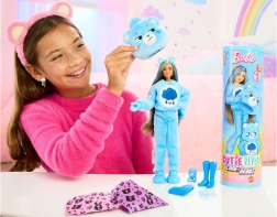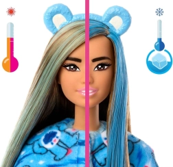 Открийте магията на серията Barbie Cutie Reveal, вдъхновена от ГРИЖОВНИТЕ МЕЧЕТА. Тази кукла е скрита в мек плюшен мечешки костюм в синьо и предлага 10 изненади, подвижни стави за позиране и магическа промяна на цвета на косата с помощта на топла и студена вода. Идеална за креативна игра, преобличане и разказване на истории.