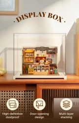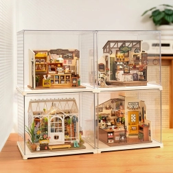 Идеална витрина за миниатюрни къщички от серия DG (с изключение на DG12). Поддържа сцената без прах и я представя красиво – от кафене и пекарна до оранжерия или кухничка.