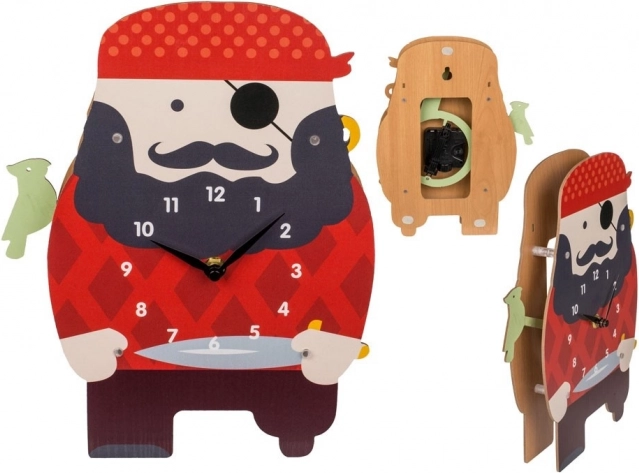 Този креативен часовник във форма на пират ще бъде забавен акцент в детската стая. Забавният зелен папагал на рамото на пирата се движи на всеки кръгъл час, което буди у децата радост и любопитство.