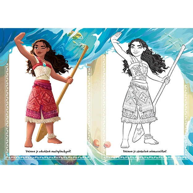 Това оцветяване с любимия мотив VAIANA ще зарадва всички малки творци. Компактният формат A5 се побира в раничка, така че е чудесно не само за у дома, но и за пътуване. Благодарение на цветните шаблони оцветяването е по-лесно и децата придобиват увереност при работа с цветовете.