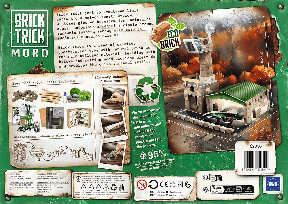Ако притежавате повече комплекти Trefel Brick Trick, можете да създавате цели селца, градове или селища. Благодарение на разтворимото лепило конструкторът е многократно използваем, което гарантира безкрайни строителни приключения.