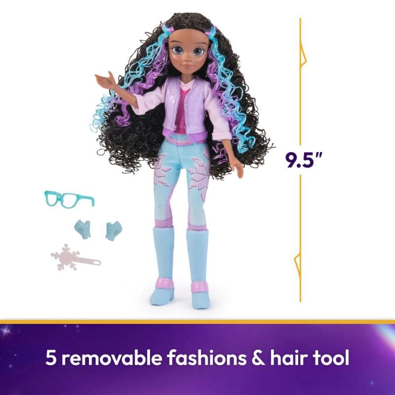 Донесете у дома магията на Unicorn Academy с куклата Лайла, която е готова за приключения, изпълнени с фантазия. Лайла има девет стави, благодарение на които може да се движи и позира като истинска героиня. Тя е облечена в характерна ездаческа екипировка за яздене на еднорог, включително лилав топ и елек, както и лилаво-сини ездачески панталони с мотиви на ледена магия.