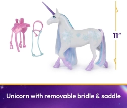 Този великолепен еднорог има величествен лъскав рог, пъстроцветна грива и опашка и е оборудван с подвижна юзда и седло, което позволява часове забавление. Леко движете главата на Снежка, за да пресъздадете нейната личност и да преживеете отново магическата връзка между еднорога и ездача.