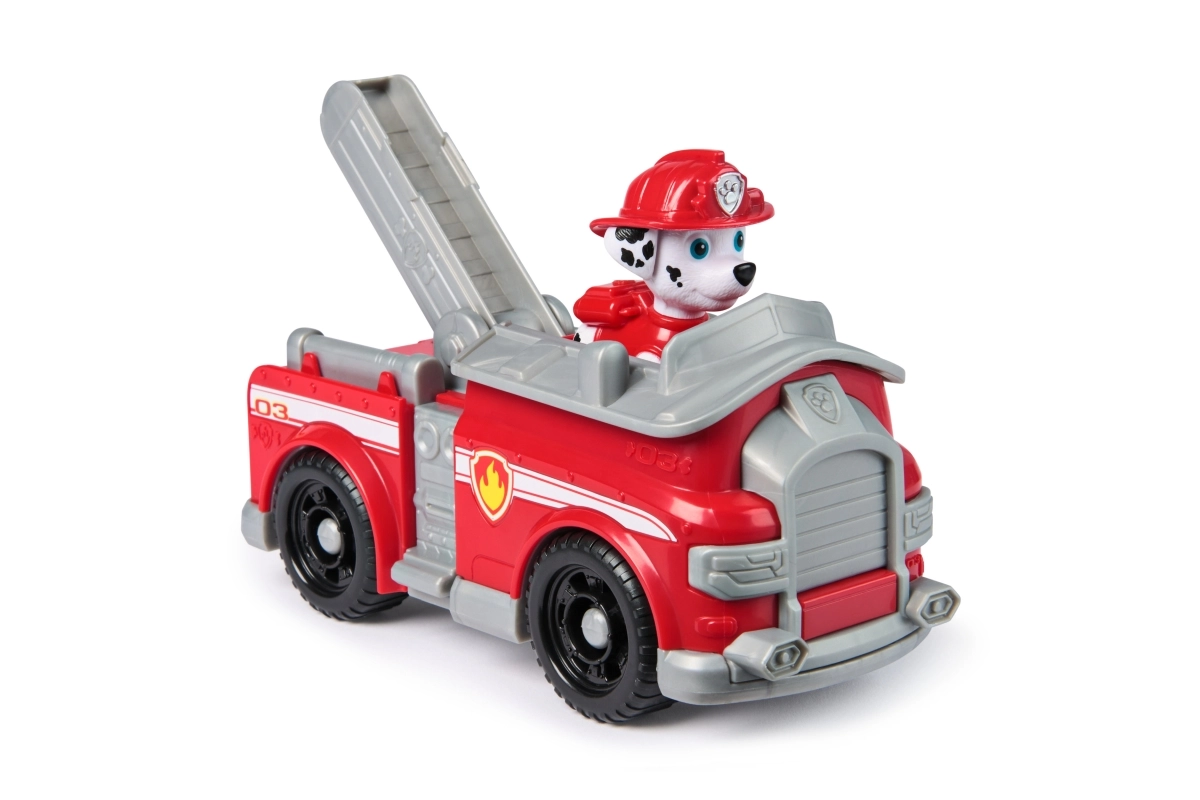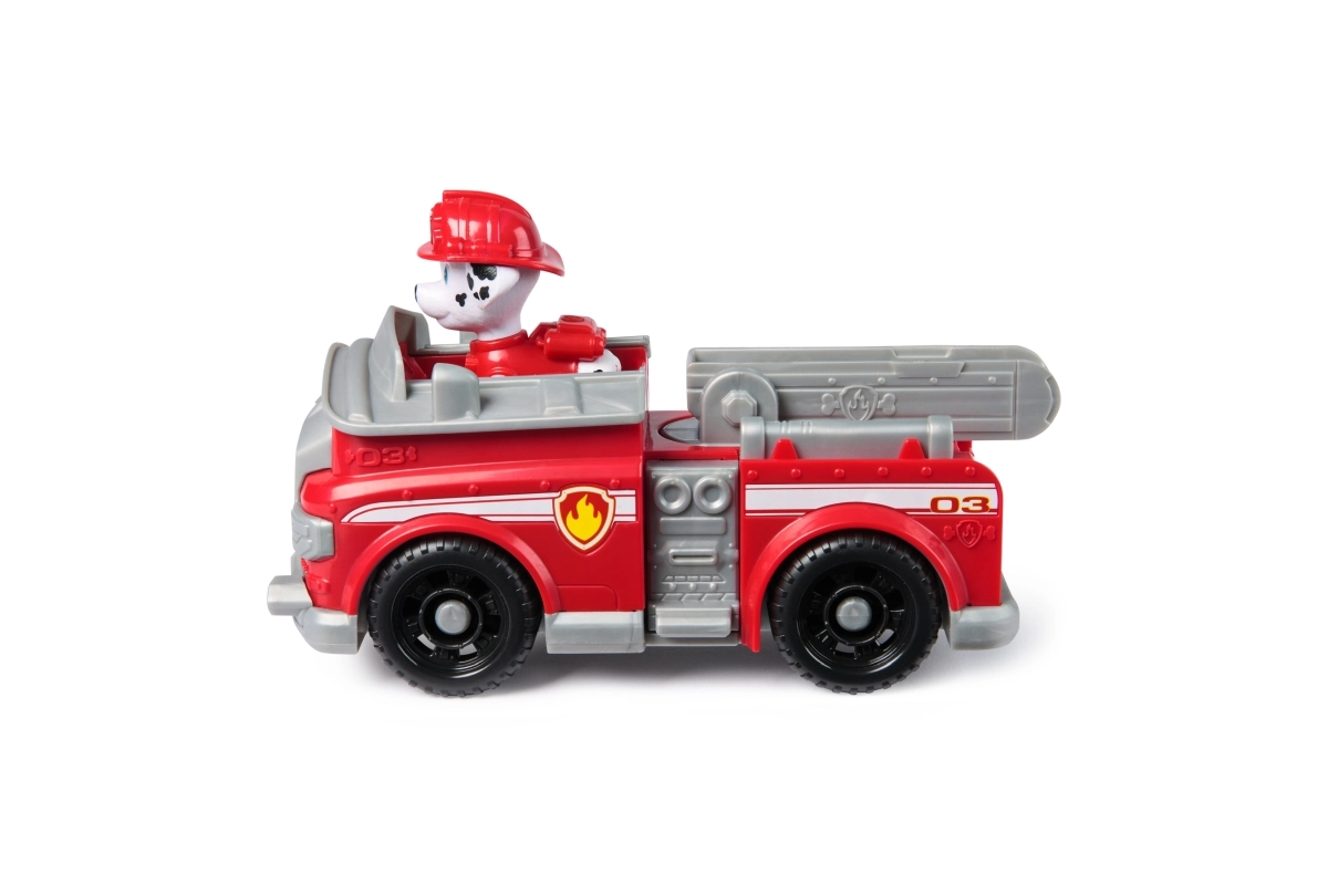 Червеният пожарен камион на Маршал с чаровния далматинец в екипировка е идеален за малки фенове на спасителните мисии. Децата могат лесно да поставят фигурката в кабината и да се притекат на помощ с гладко въртящи се колела и изтегляща се стълба. Автентичните елементи от сериала насърчават креативните истории от Adventure Bay.