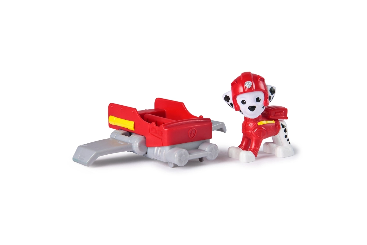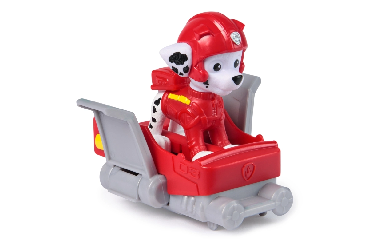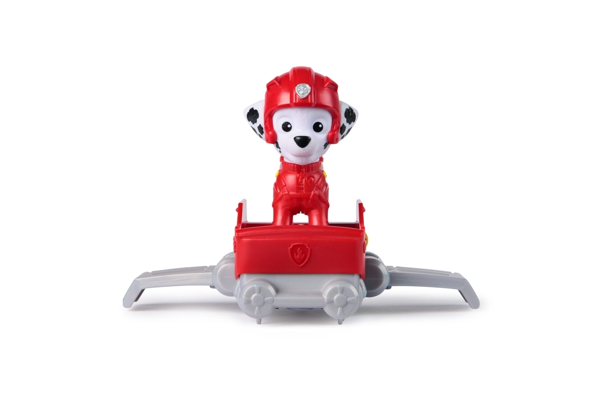 Отправете се на спасителна мисия с Маршал от Пес патрул и неговия ховъркрафт с разгъващи се крила. Фигурка с височина около 5 cm в червено авиационно яке и каска се закрепя в превозното средство, което с едно движение се превръща в малък самолет за екшън игри. Идеално за креативна игра, развитие на фината моторика и допълване на вашата колекция PAW Patrol.
