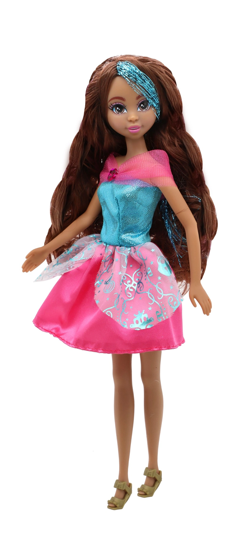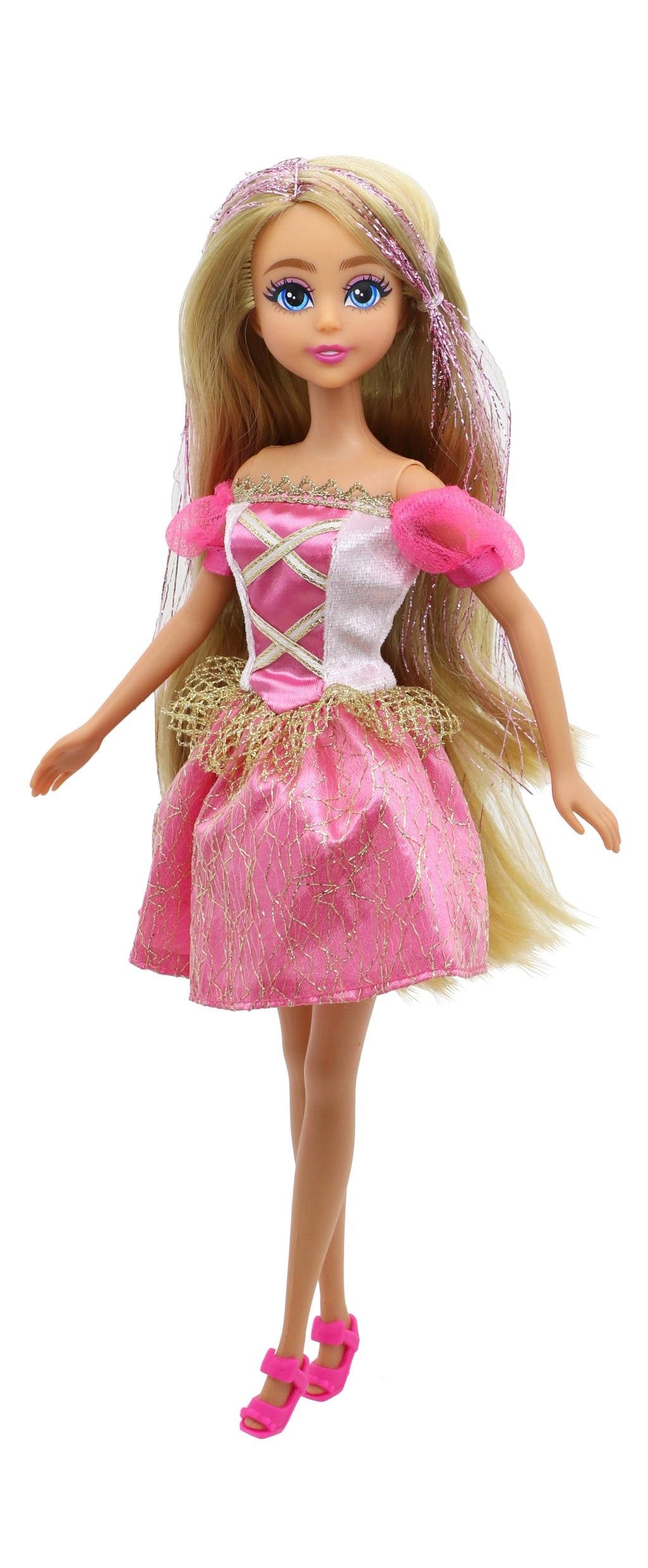 Блестяща рокля, фини детайли и подходящи обувки превръщат куклата в истинска принцеса, която озарява всяка детска стая.