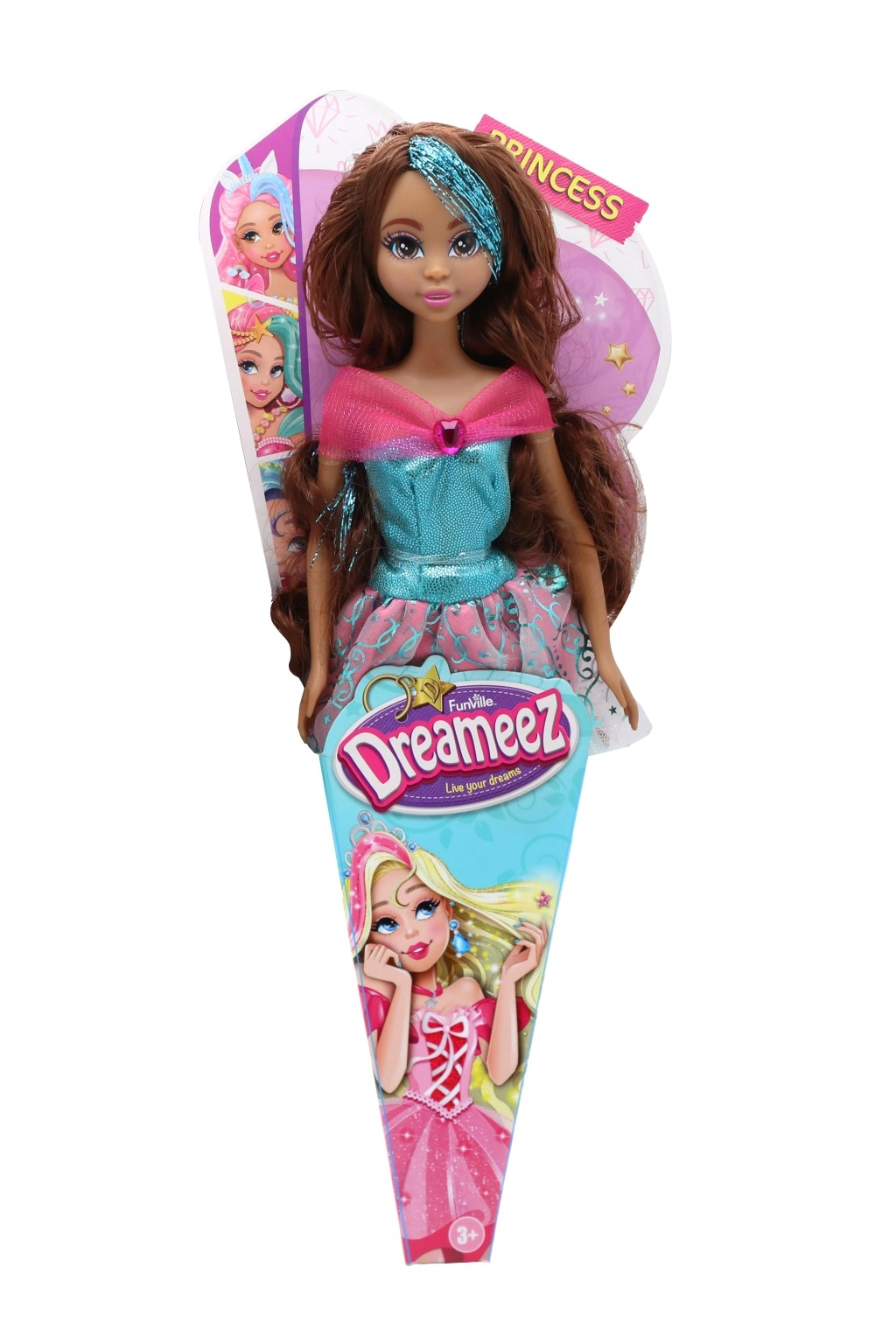 Куклата Dreameez пренася децата в свят на фантазия и приказки. Стилната рокля, фините детайли и дългата коса канят към разресване, украсяване и безкрайни истории. Опаковката във формата на фунийка я превръща и в чудесен подарък, който впечатлява от първия поглед.