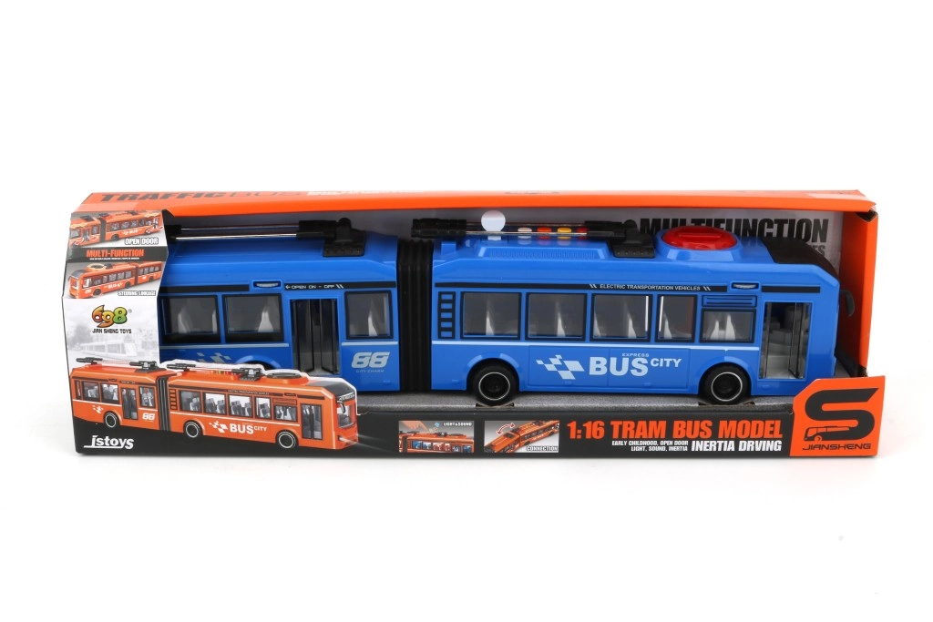 Отправете се на градско приключение с реалистичен модел тролейбус в мащаб 1:16. Благодарение на компактните размери е чудесен за игра у дома и върху игрова постелка, а неговият атрактивен син цвят привлича вниманието от пръв поглед.