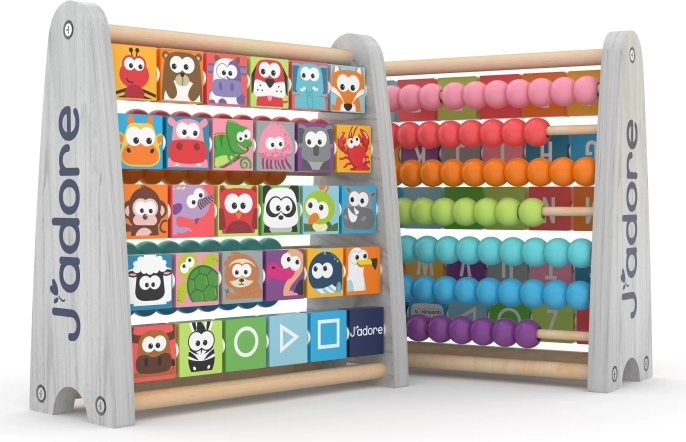 Открийте забавна образователна играчка, която съчетава брояч и азбука в едно. Дървената изработка J’adore е от екологично устойчиво дърво без химикали и е идеална за деца от 24 месеца. Подпомага развитието на паметта, концентрацията и визуализацията чрез игриво учене.