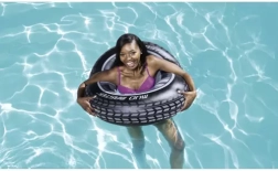 Поясът има достоверен вид на автомобилна гума, който привлича вниманието на деца и възрастни и добавя забавен елемент към всеки басейн.