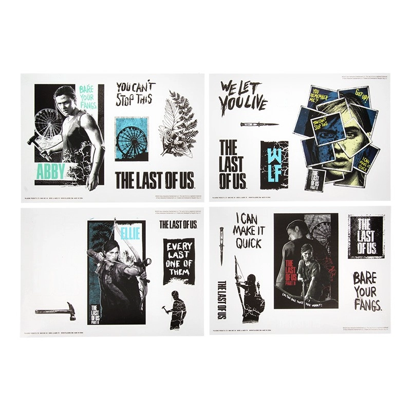 Вземете ексклузивен комплект винилови стикери с мотиви от популярната гейм поредица The Last of Us. Идеални за освежаване на лаптопи, куфари, телефони или други гладки повърхности. Този официално лицензиран комплект включва различни дизайни, които ще зарадват всеки фен.