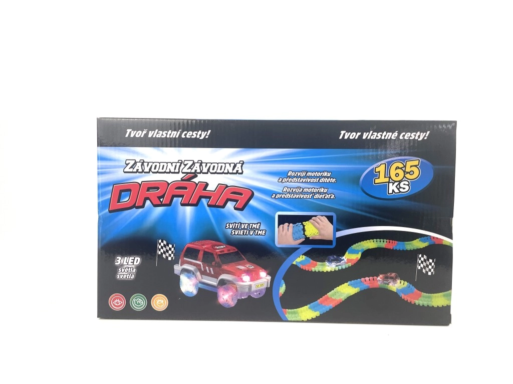 Сглобяването на пистата подпомага развитието на креативността, фината моторика и въображението на децата. Тази светеща писта е идеална както за по-малки, така и за по-големи деца, които обичат бързите коли и състезанията.