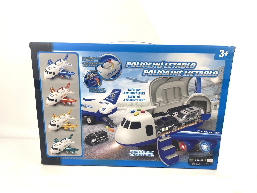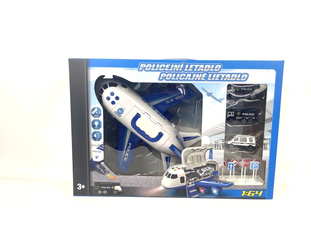 Полицейски самолет с товарно отделение и 3 колички е страхотен игрален комплект за деца. Включва самолет със светлинни и звукови ефекти и три метални колички в мащаб 1:64.