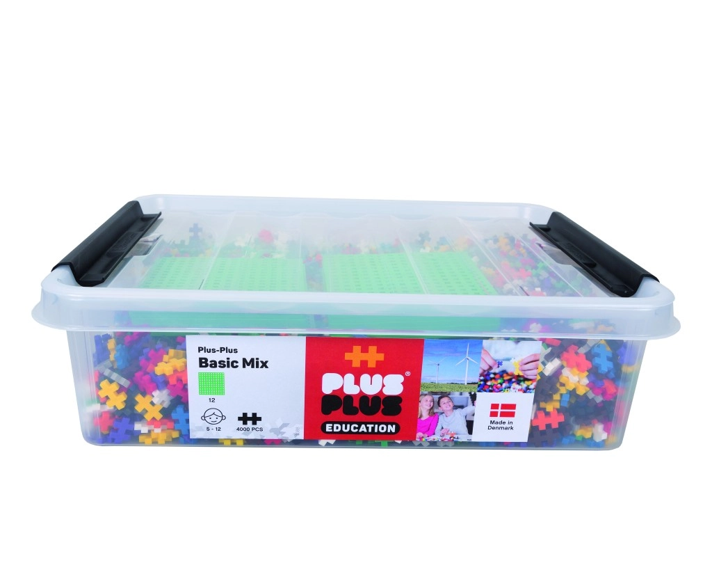Открийте универсалния конструктор Plus-Plus, с който децата развиват креативност, логическо мислене и фината моторика. Голямата кутия за съхранение съдържа 4000 елемента в популярни основни цветове и 12 здрави подложки за изграждане на 2D и 3D модели. Практичната опаковка е чудесна за колективи – за класни стаи, занимални и клубове за свободното време.