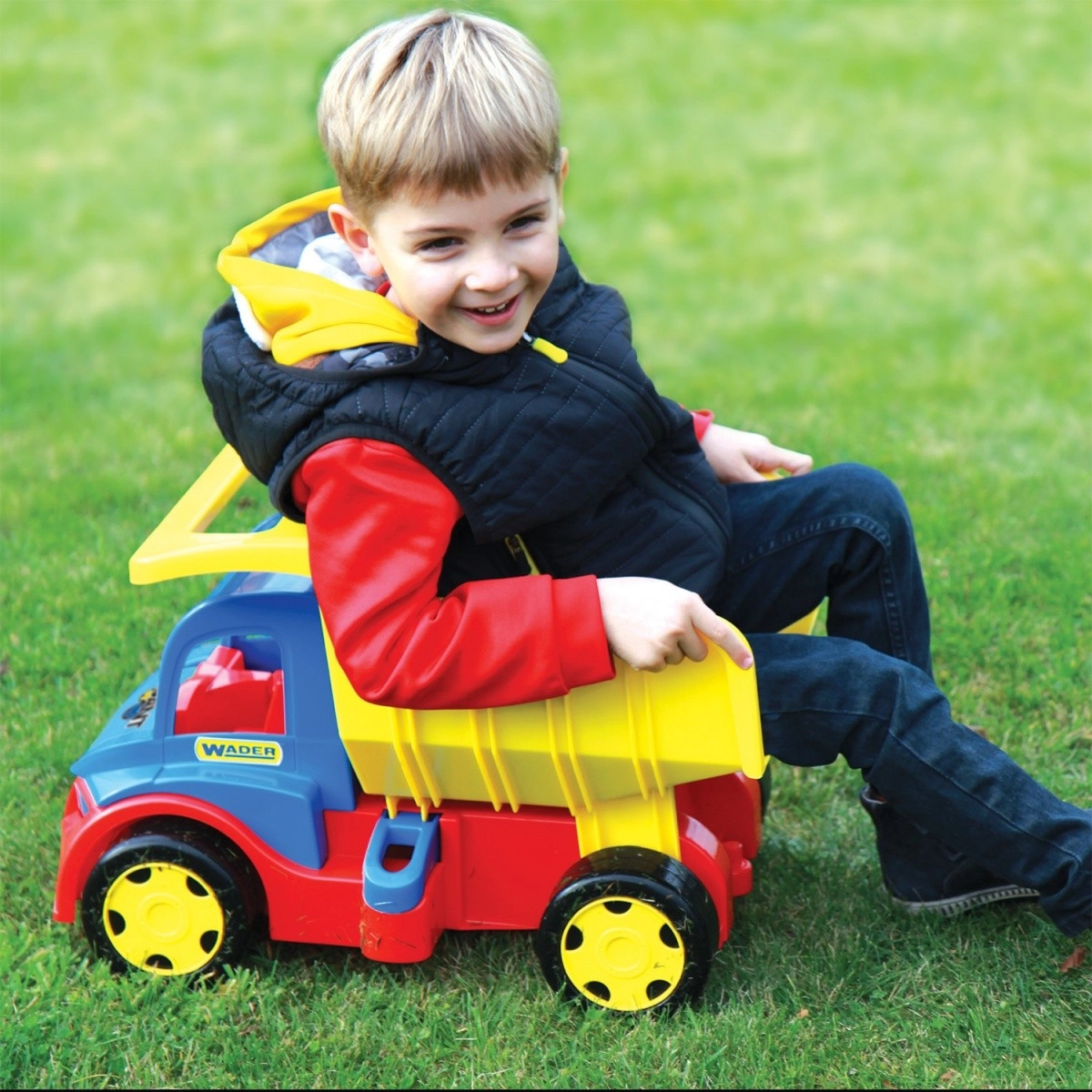 Самосвалът има стабилна и издръжлива конструкция с товароносимост до 150 kg.