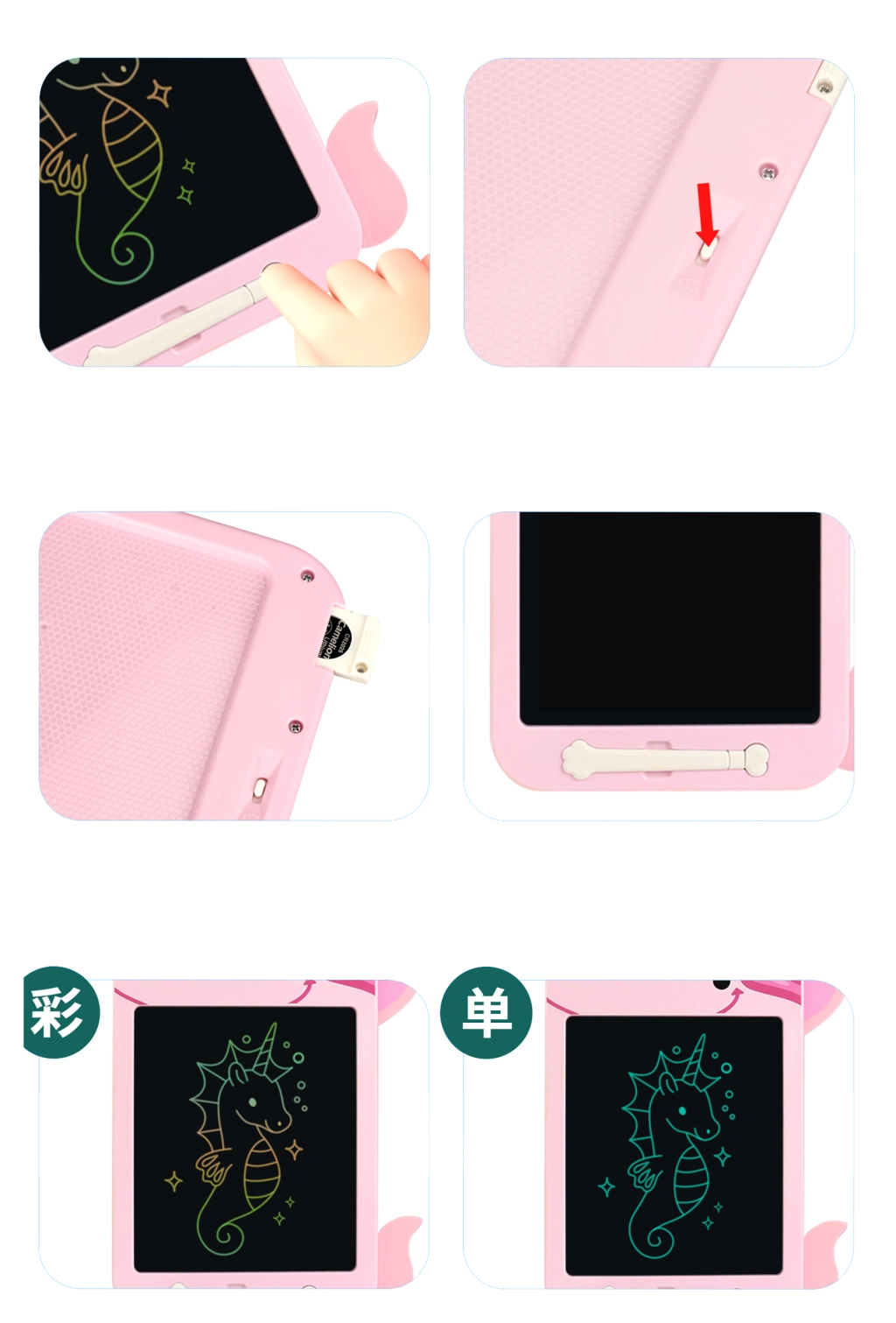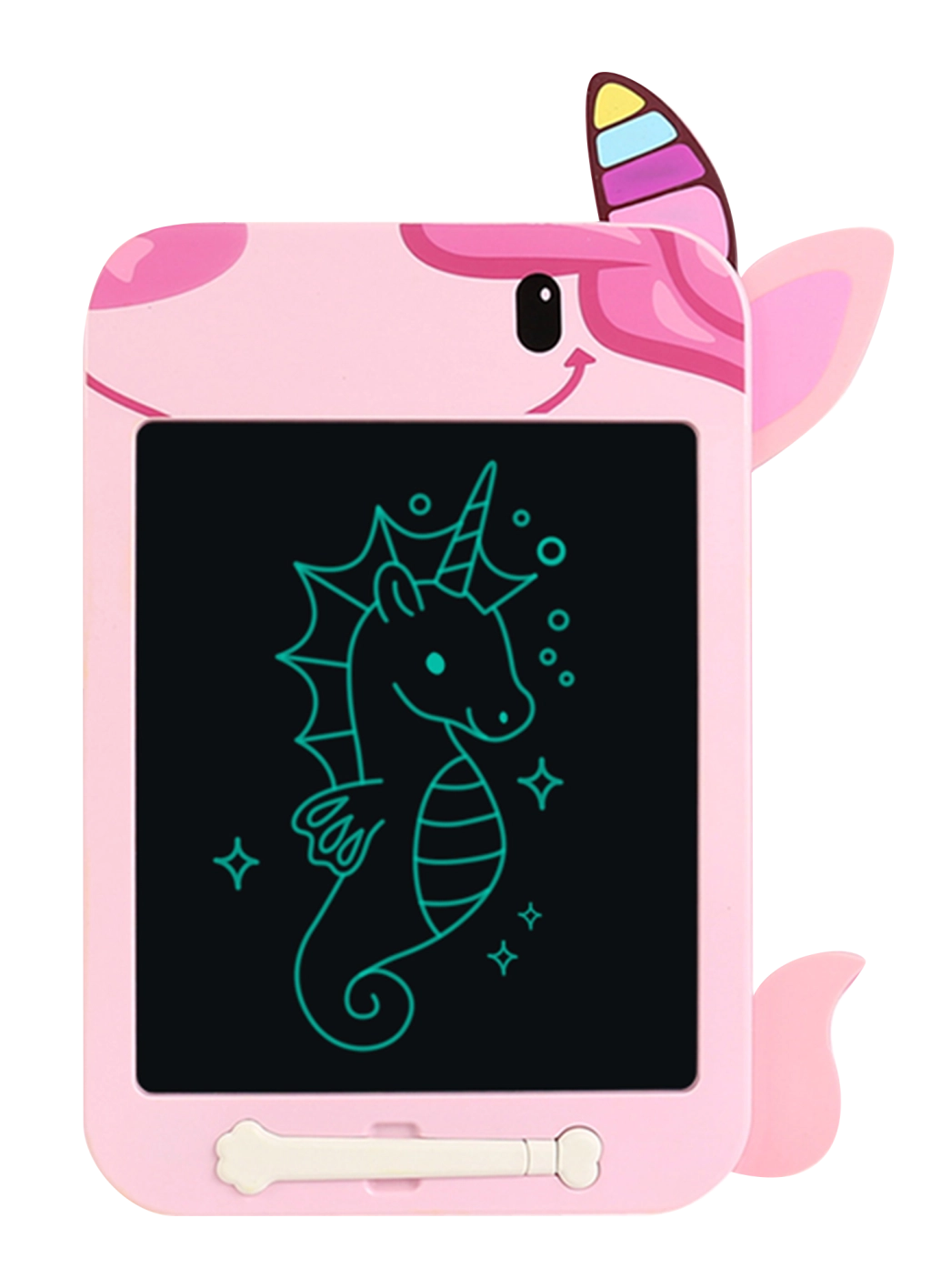 Пусни креативността си да тече свободно с тази вълшебна LCD дъска във форма на весел еднорог! Рисувай, пиши и твори без ограничения, с едно копче изтриваш всичко и можеш да започнеш отново.
