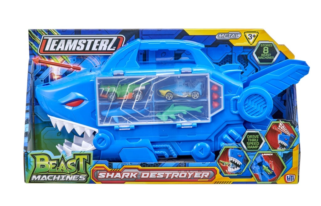 Акуловият гараж TEAMSTERZ съчетава екшън игра, съхранение и пренасяне. Вътре се крие drive-thru рампа, по която колите преминават директно през челюстите на акулата. Интегрираният изстрелвач на снаряди на главата на акулата добавя солидна доза адреналин към всяко каране.