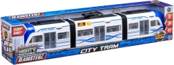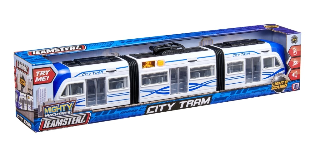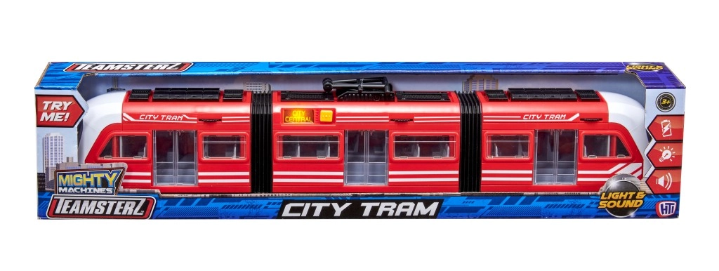 Открийте света на градския транспорт с трамвая Teamsterz. Тази играчка е оборудвана с функция за отваряне на врати и два гъвкави шарнира, които позволяват лесно огъване, имитиращо движението на истински трамвай.