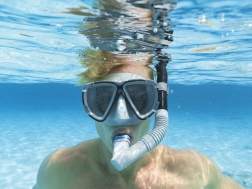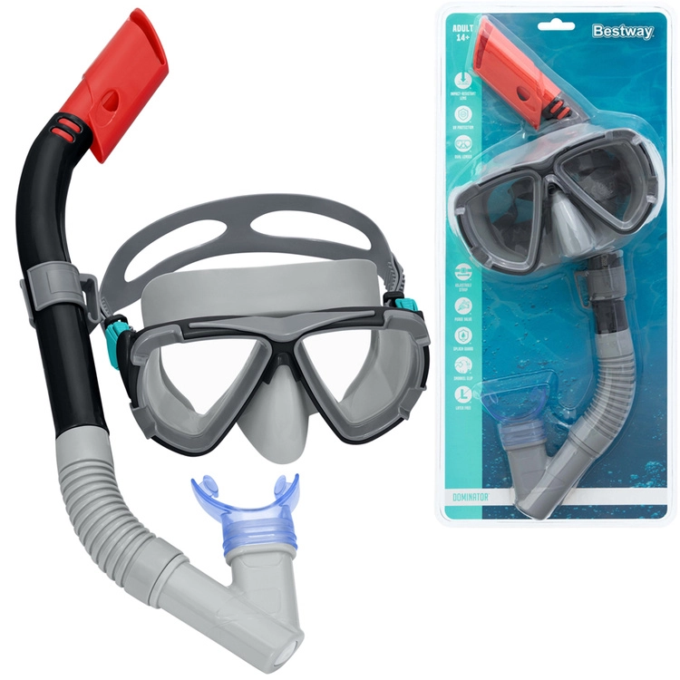 Този комплект за шнорхелинг е създаден да осигури максимален комфорт и безопасност по време на водни активности. Благодарение на поликарбонатните лещи можете да разчитате на ясна видимост под водата, а UV защитният слой предпазва очите ви от вредните слънчеви лъчи.