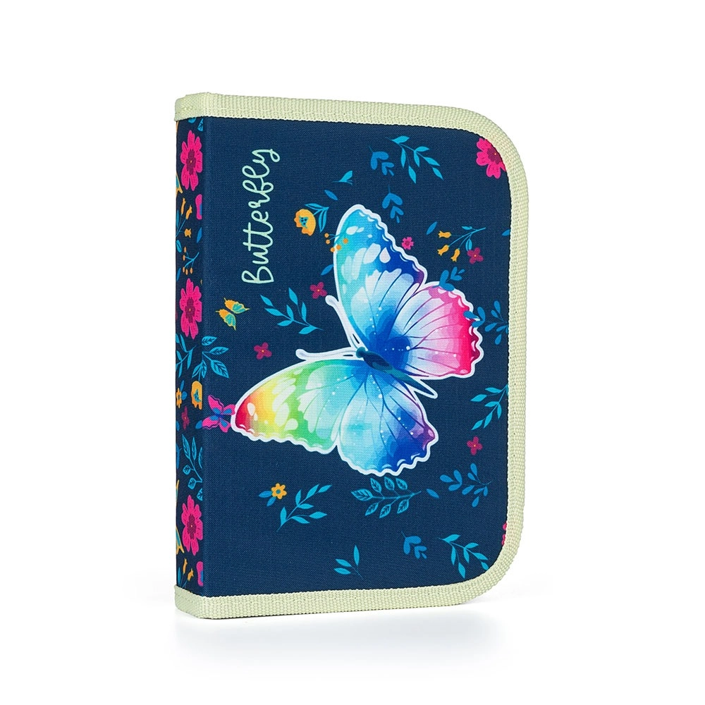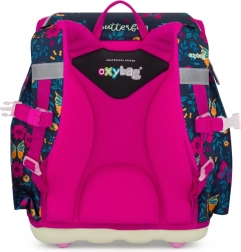 Лек училищен комплект 3 части с мотив пеперуда включва просторна раница, сак и несесер. Раницата тежи само 970 г, има ергономична подплата, широки регулируеми презрамки с гръден колан, светлоотразителни елементи и магнитно закопчаване. Предлага обем 26 л, практичен разделител и множество джобове – идеален избор за най-малките ученици от 121 см нагоре.