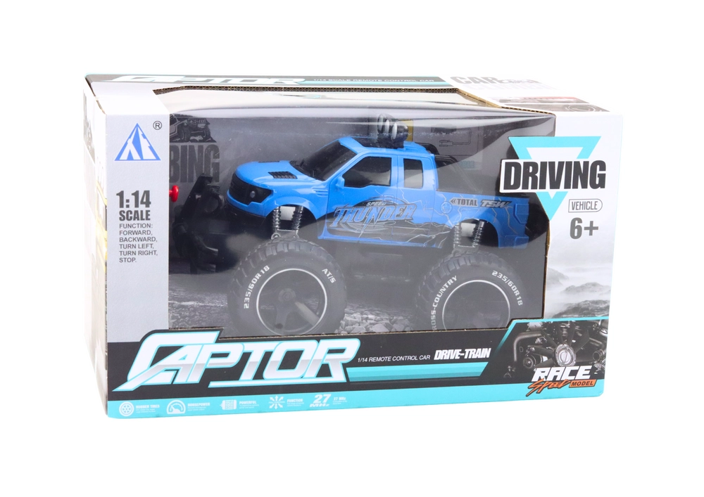 Синята офроуд RC кола в мащаб 1:14 е идеален избор за деца и начинаещи почитатели на офроуда. Здравата конструкция, реалистичното купе, броните и фаровете подчертават атрактивния външен вид, докато големите гуми се справят с различни видове настилки.