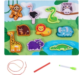 Дървен магнитен пъзел с животни е образователна играчка, която развива креативността и сръчността на децата. Този цветен пъзел комбинира дървени и магнитни елементи за привлекателно и забавно учене.