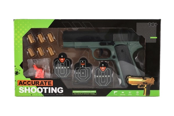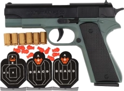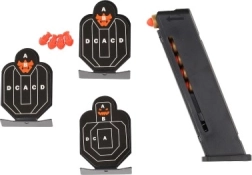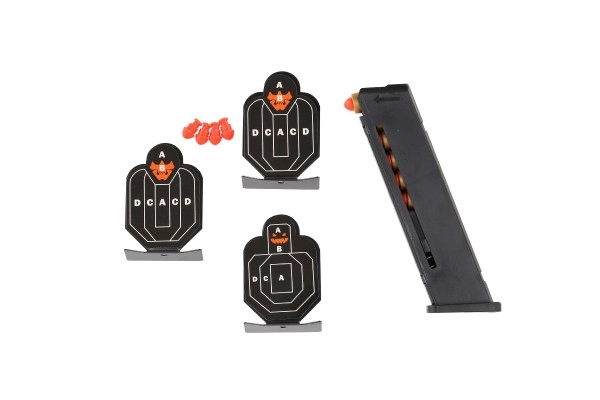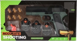 Въоръжи се с този пистолет за пяна и изпробвай стрелческите си умения върху мишените. Комплектът включва 6 снаряда и 3 мишени за максимално забавление.