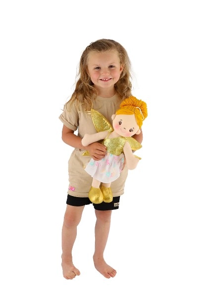 Представяме ви куклата Фея Глухарче, очарователна играчка, създадена за малки момиченца, която ще стане тяхна нова приятелка у дома и по време на път. Тази текстилна кукла има красиви златни крила и е кръстена на нежното цвете — глухарчето. Благодарение на лекотата и лесната поддръжка ще я заобичат както родителите, така и децата.