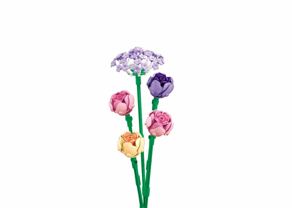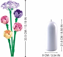Конструкторът е съвместим с LEGO, COBI и Mega Bloks, така че лесно можете да го разширите с елементи от вашата колекция. Благодарение на реалистичните пропорции готовият букет изглежда чудесно във ваза у дома или в офиса.