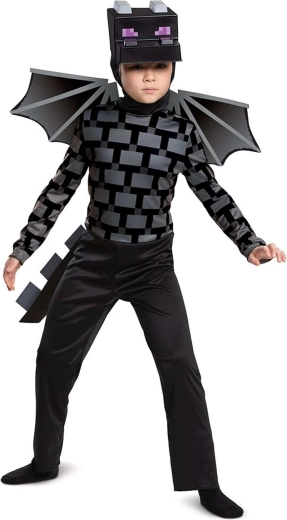 Този официално лицензиран костюм, вдъхновен от блоковата естетика на Minecraft, превръща детето в страховития Ender Dragon. Лекият плат, пяна елементите и кутиеобразната маска с лилави „пикселни“ очи гарантират ефектна визия и удобство при движение.