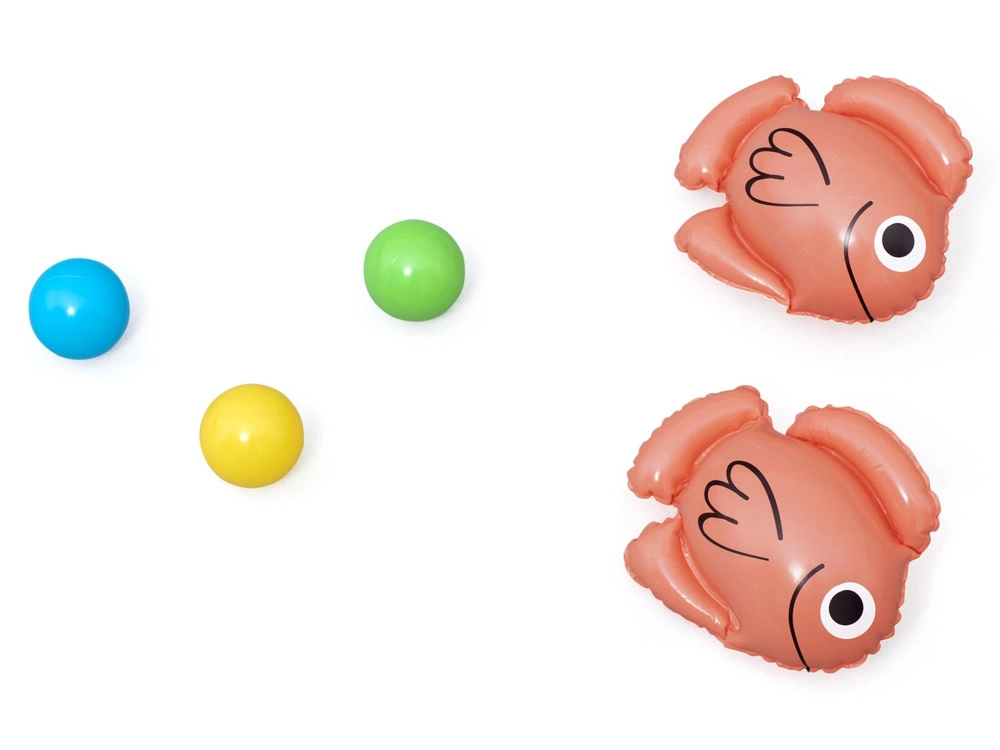 - 1 × басейн, 1 × подвижна рибарска мрежа, 2 × рибка Puffy Pal, 3 × топче, 1 × ремонтна лепенка