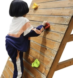 Комплектът катерачни хватки TRIZAND превръща всяка стена, игрална къщичка или дворен модул в безопасно и забавно място за движение. Различните форми и ярките цветове мотивират децата да играят, докато противохлъзгащата повърхност дава сигурен захват за ръце и крака. Благодарение на лесния монтаж и пълната окомплектовка ще създадете катерачен маршрут по ваш вкус.