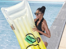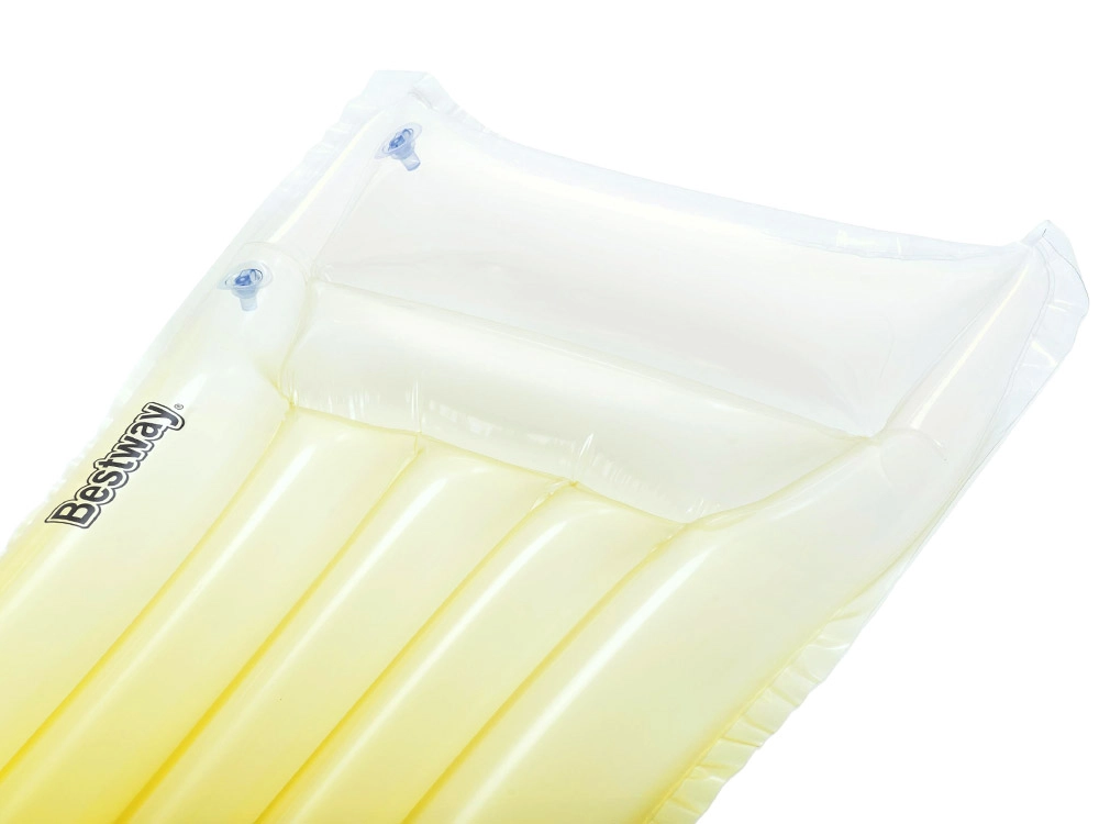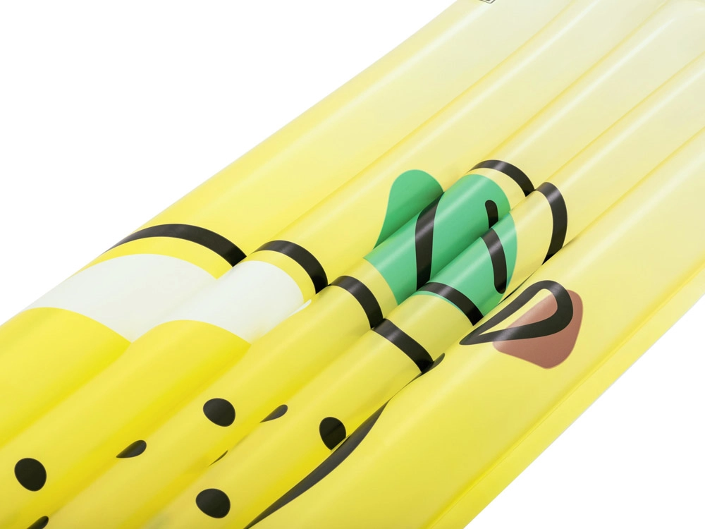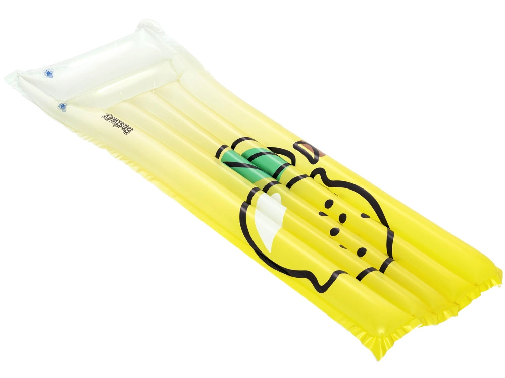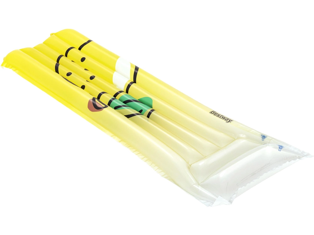 Този надуваем дюшек с лимонов дизайн е идеален избор за онези, които искат да се наслаждават на летните дни край водата. С размери 183 x 69 cm предлага достатъчно пространство за удобна почивка.