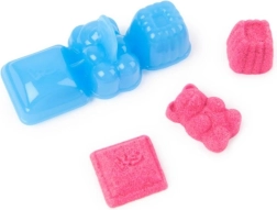 Създавайте цветни „лакомства“ от емблематичния пясък Kinetic Sand! Тематичният комплект с около 85 g неонов пясък (лилав, розов, зелен или син – цветът може да варира) и формичка за вкусотийки подкрепя въображението, фината моторика и сетивната игра. Пясъкът не залепва по ръцете, държи се заедно, никога не изсъхва и почистването е лесно като игра.