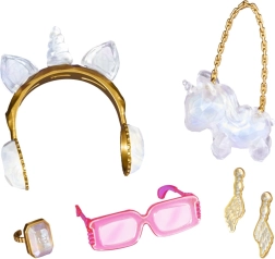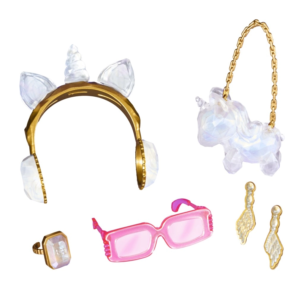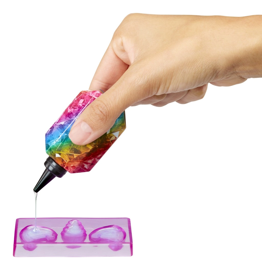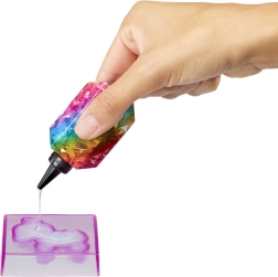 Amaya Raine от колекцията Rainbow High Creative Crystals съчетава творческа работилница със света на модата. С помощта на прозрачна смола и многократни формички лесно отливаш оригинални висулки, очила и други украшения, с които допълваш тоалета на куклата – и собствения си стил. Всеки твой творчески проект е уникален и придава искра на играта.