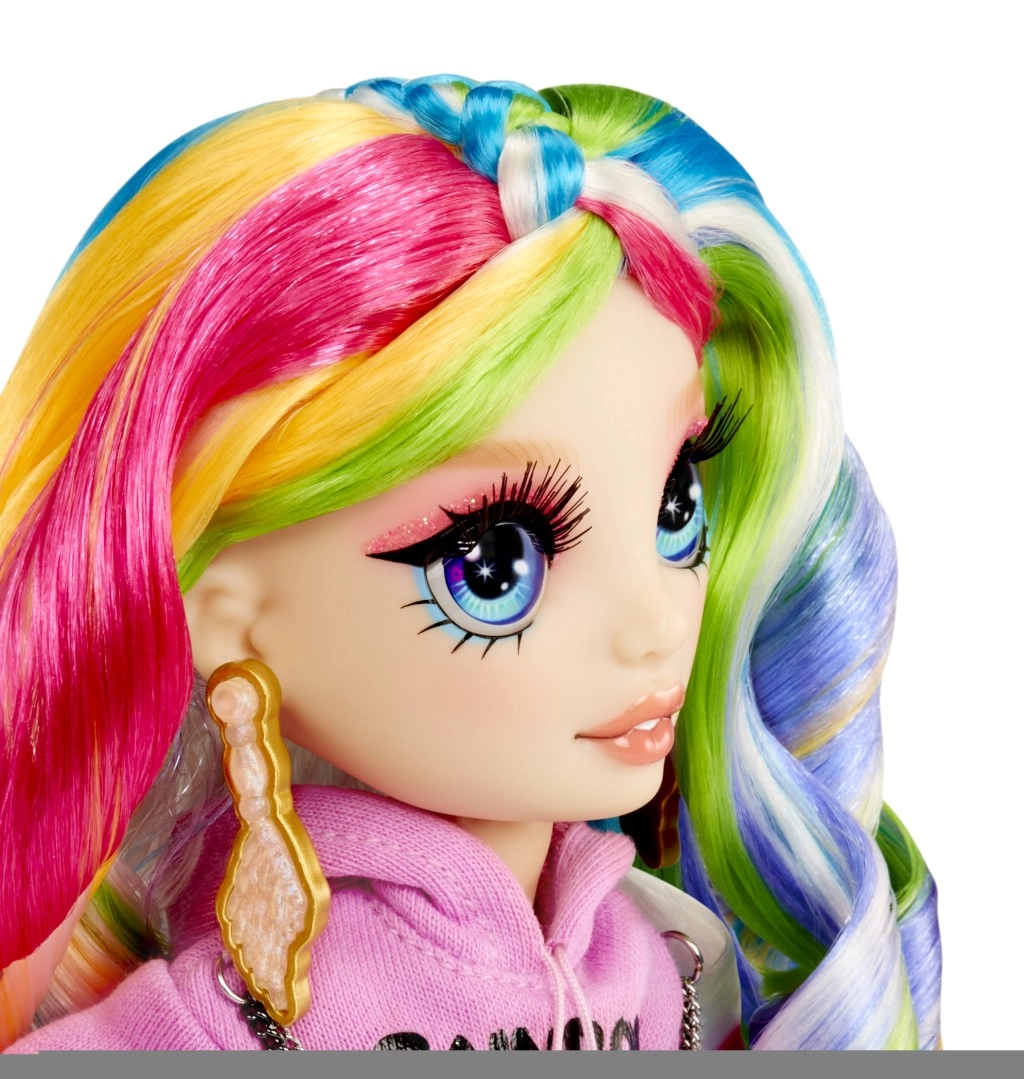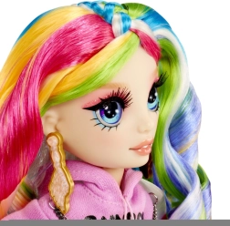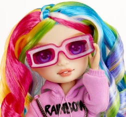 Amaya Raine очарова с впечатляваща дъгова коса, суичър с надпис RAINBOW и лъскава пола. Благодарение на подвижните стави позира страхотно и забавлява.
