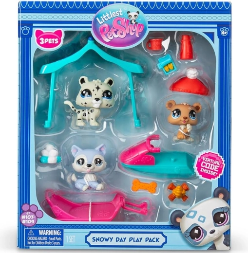 Потопете се в заснеженото забавление с поколението Littlest Pet Shop. В комплекта ще откриете снежен леопард, куче хъски и мече – всички с типична bobblehead глава за още по-изразителна визия и сладки пози. Благодарение на богатото оборудване децата могат да изградят собствена зимна сцена – от спускане с шейна и скутер до къмпинг край огъня.