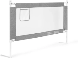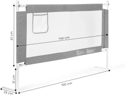 Предпазната преграда за легло с ширина 150 см от ECOTOYS защитава децата от падане, като същевременно позволява на родителите комфортно съвместно спане. Предлага регулируема височина, скапваща се горна шина за лесен достъп, дишаща мрежа и практичен джоб за дребни вещи. Универсален монтаж, възможност за свързване на няколко прегради и здрава стоманена конструкция осигуряват дълъг живот и максимална безопасност.