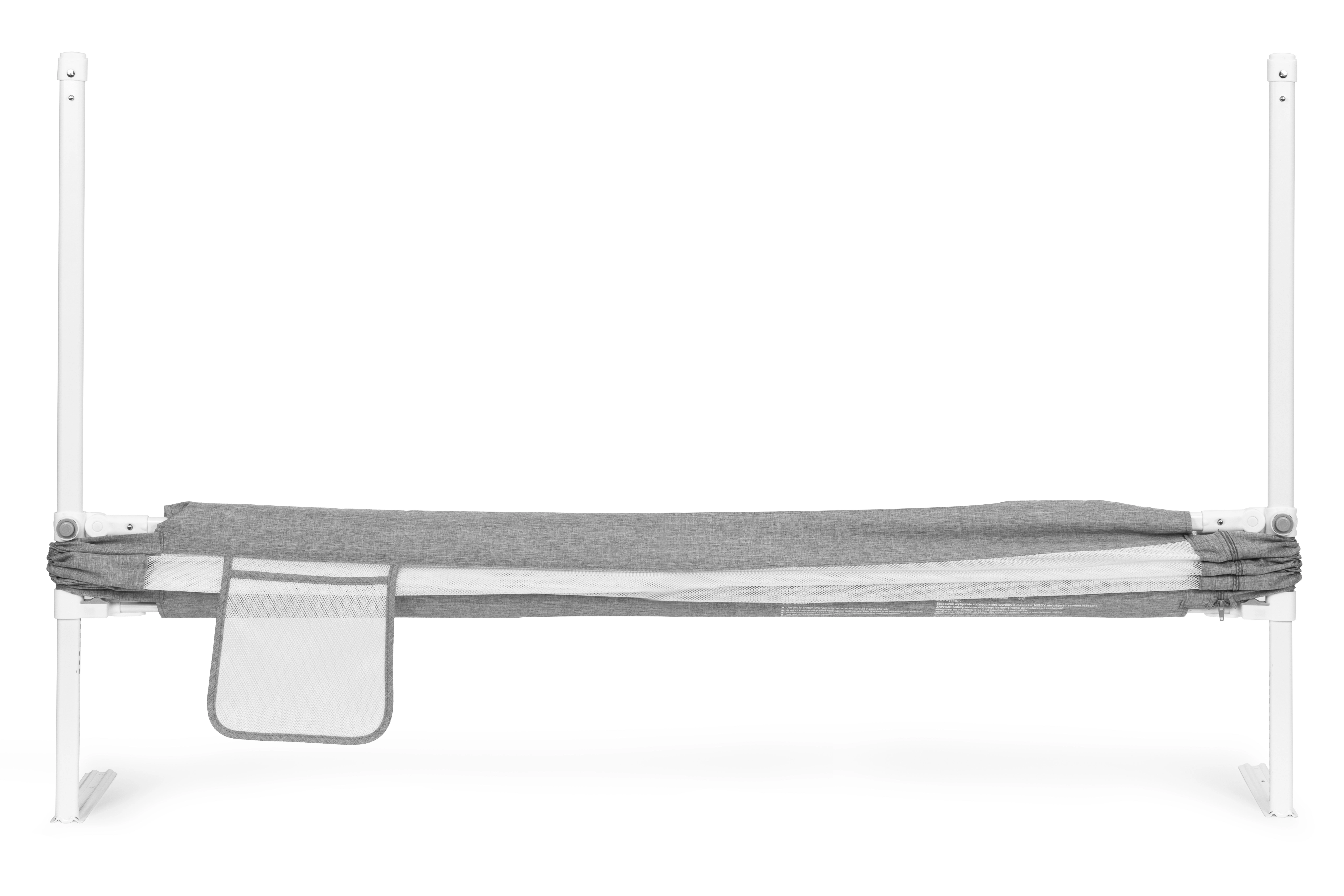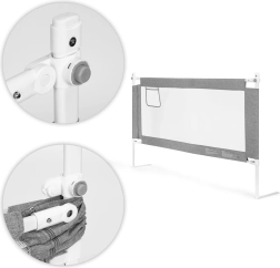 Универсалната система за закрепване улеснява монтажа върху различни видове легла, а възможността за свързване на няколко панела създава защитено пространство по обиколката на леглото. Здравата комбинация от стомана, PP и качествен текстил гарантира стабилност и лесна поддръжка – калъфът може да се сваля и пере.