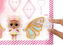 L.O.L. Surprise представя изцяло нов начин за игра и творчество. Смеси цветния „фееричен прах“ с вода, запълни шаблона на крилата и след изсъхване ги закрепи към куклата. Благодарение на магическите криле и блестящите ефекти се получава оригинален дизайн, с който твоята фея ще изпъкне. Сферата служи и като стилна поставка за изложение.