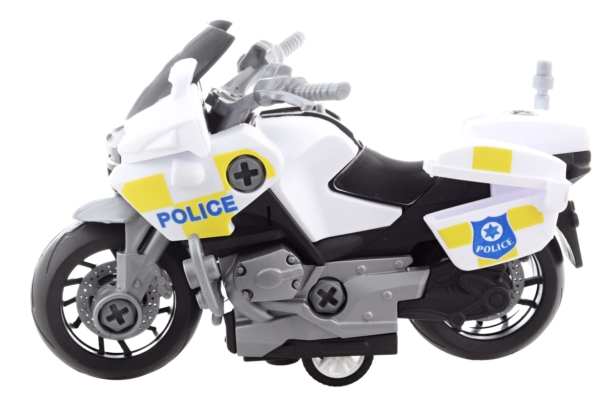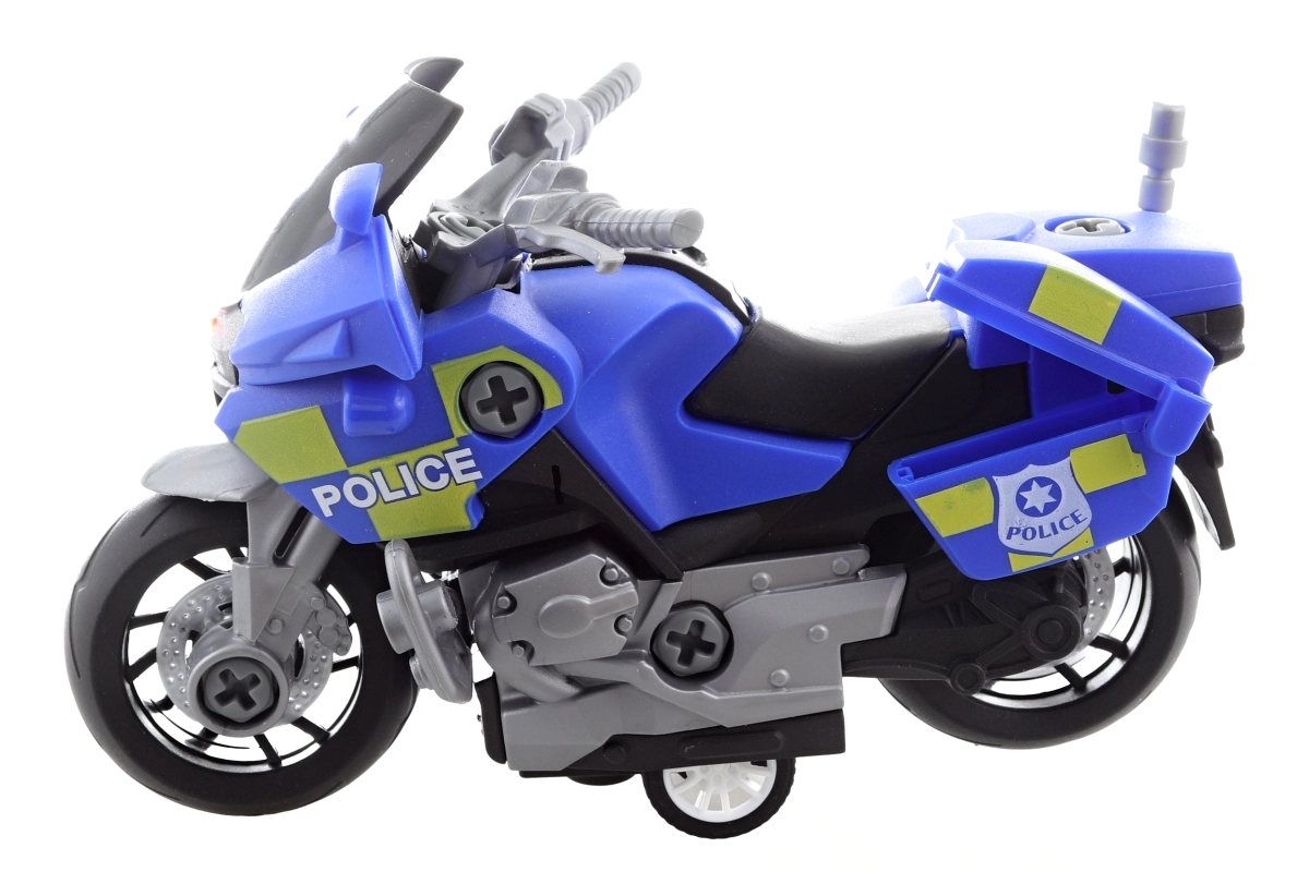 Открийте интерактивната винтова моторетка, която ще впечатли всеки малък фен на бързите колела и полицейските преследвания. При натискане на бутона моторетката светва и издава реалистични звуци, което я прави перфектна играчка за креативна и динамична игра. Батериите са включени в опаковката, така че забавлението може да започне веднага.