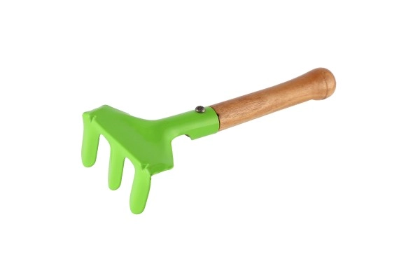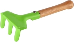 Този цветен тричастен комплект детски инструменти е проектиран да бъде издръжлив, лек и лесен за управление за деца от 5 години. Металните работни части се справят с обичайните градински задачи, докато ергономичните дървени дръжки пасват добре на детската ръка.