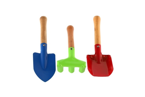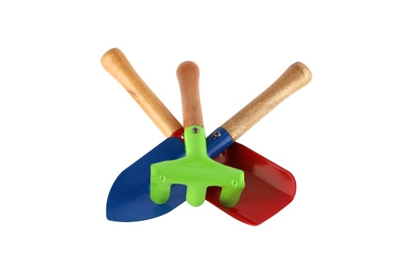 Трите основни инструмента – лопатка, лопата и гребло – позволяват на децата да копаят, пресаждат и разрохкват почвата. Всичко в идеален размер за детска ръка.