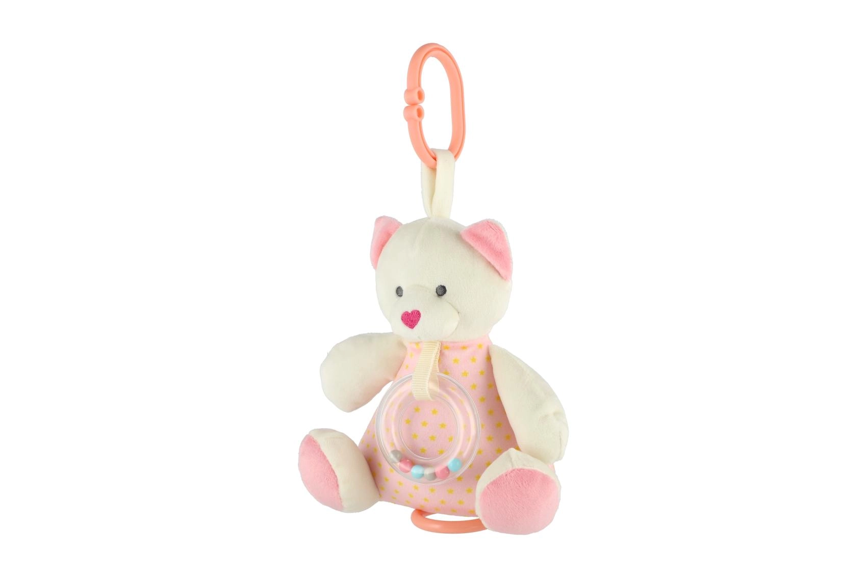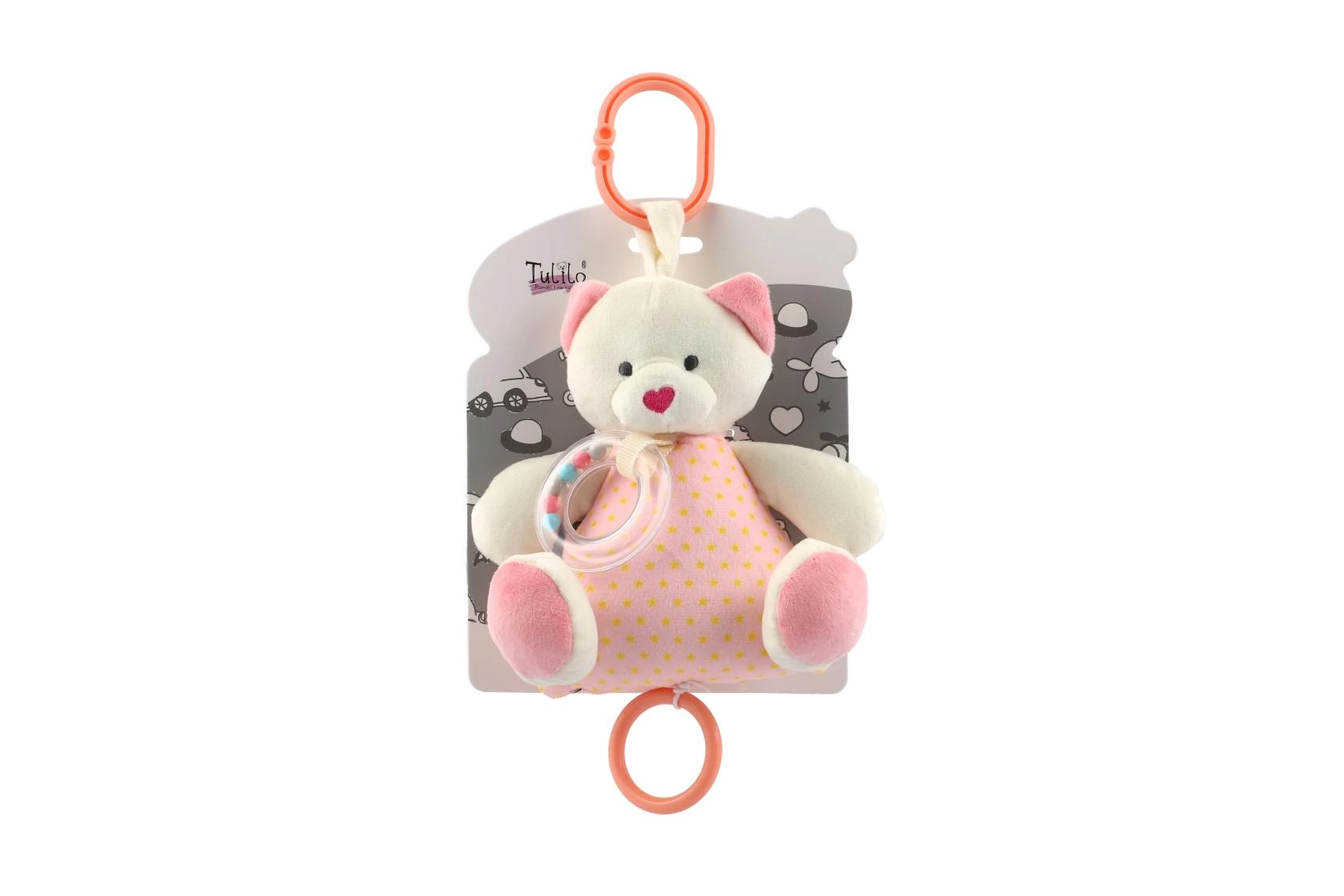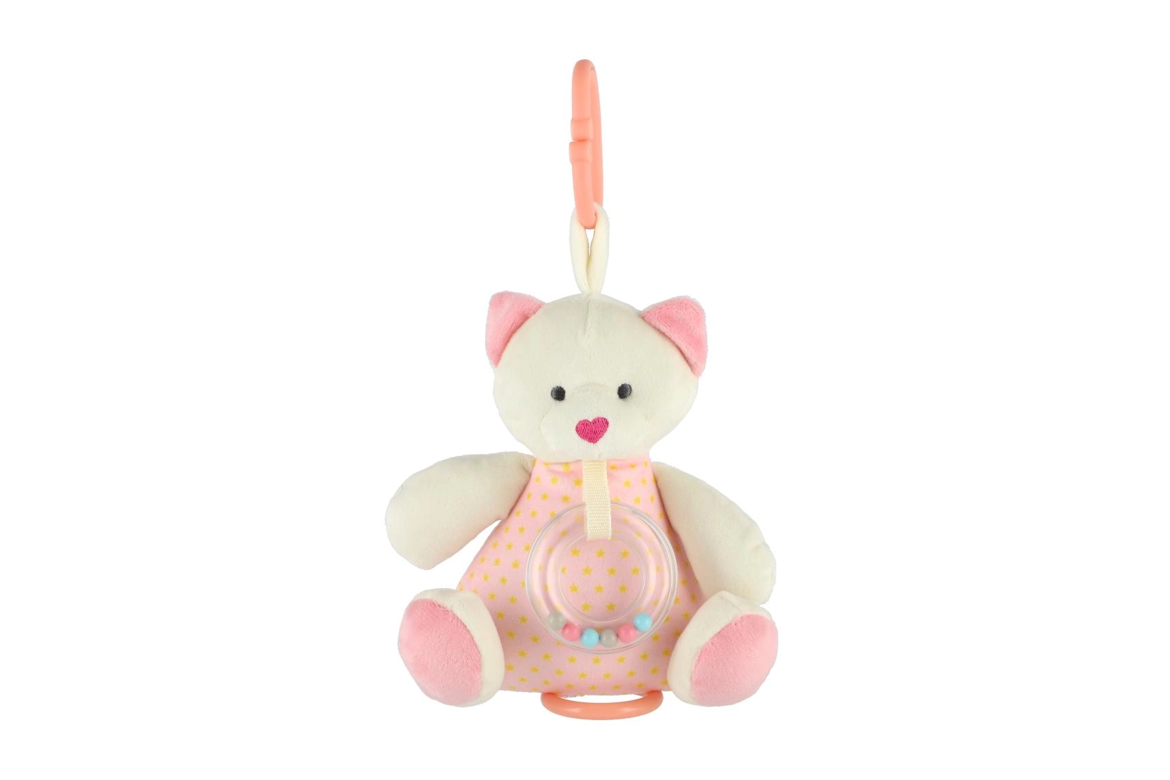 Това копринено меко мече е създадено да успокоява бебето и да го придружава при заспиване. Приятният плюш, нежните цветове и тихите звукови стимули го правят идеалната първа играчка и мил приятел за гушкане. То е леко, удобно за хващане и благодарение на обмислената изработка подпомага сетивното развитие на детето.