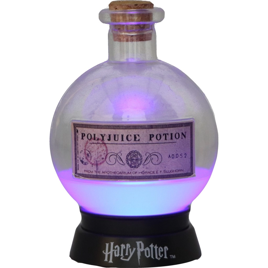 Влезте в света на магията с впечатляваща лампа, вдъхновена от Многоликовата отвара. Стилната декорация с поставка и логото на Harry Potter създава меко, сменящо се по цвят осветление, което озарява бюрото, рафта или нощното шкафче.