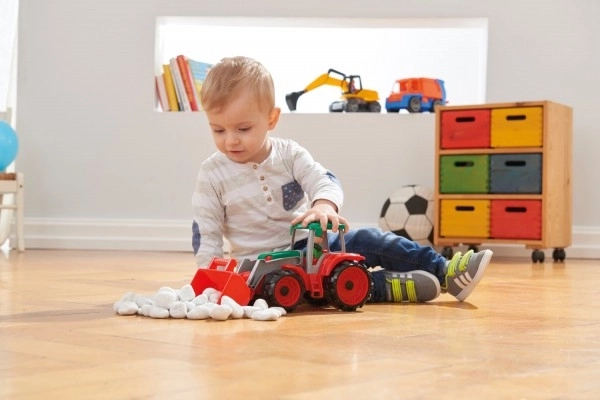 Открийте издръжливия трактор LENA TRUXX, който развива въображението и фината моторика. Благодарение на предната кофа децата лесно загребват и пресипват пясък или кубчета и се наслаждават на часове креативна игра. Отваряемата кабина с фигурка на шофьор добавя реалистични детайли и подкрепя ролеви сценарии на фермата или строежа.