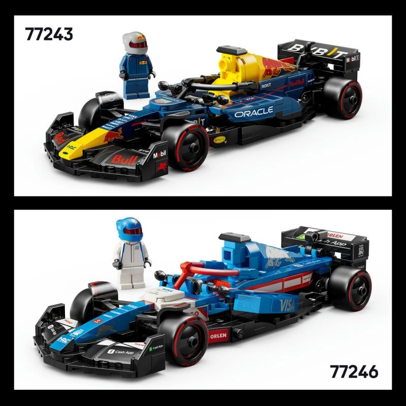 Комплектът включва минифигура на пилот от Формула 1 в екипировка на Red Bull с каска, която можете да поставите в кокпита и да пресъздавате състезателни ситуации.