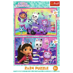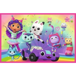 Пъзел 2x24 Забавления с Габи е идеален за всички деца, които обичат реденето на пъзели. Комбинира две картинки от любимата приказка Къщичката на Габи, всяка с размер 275x180 мм.