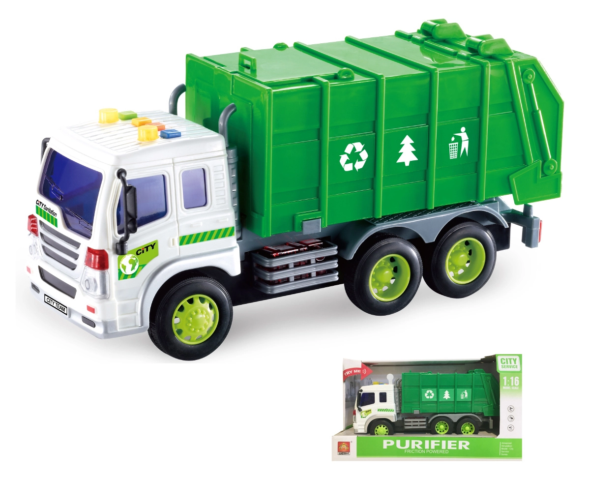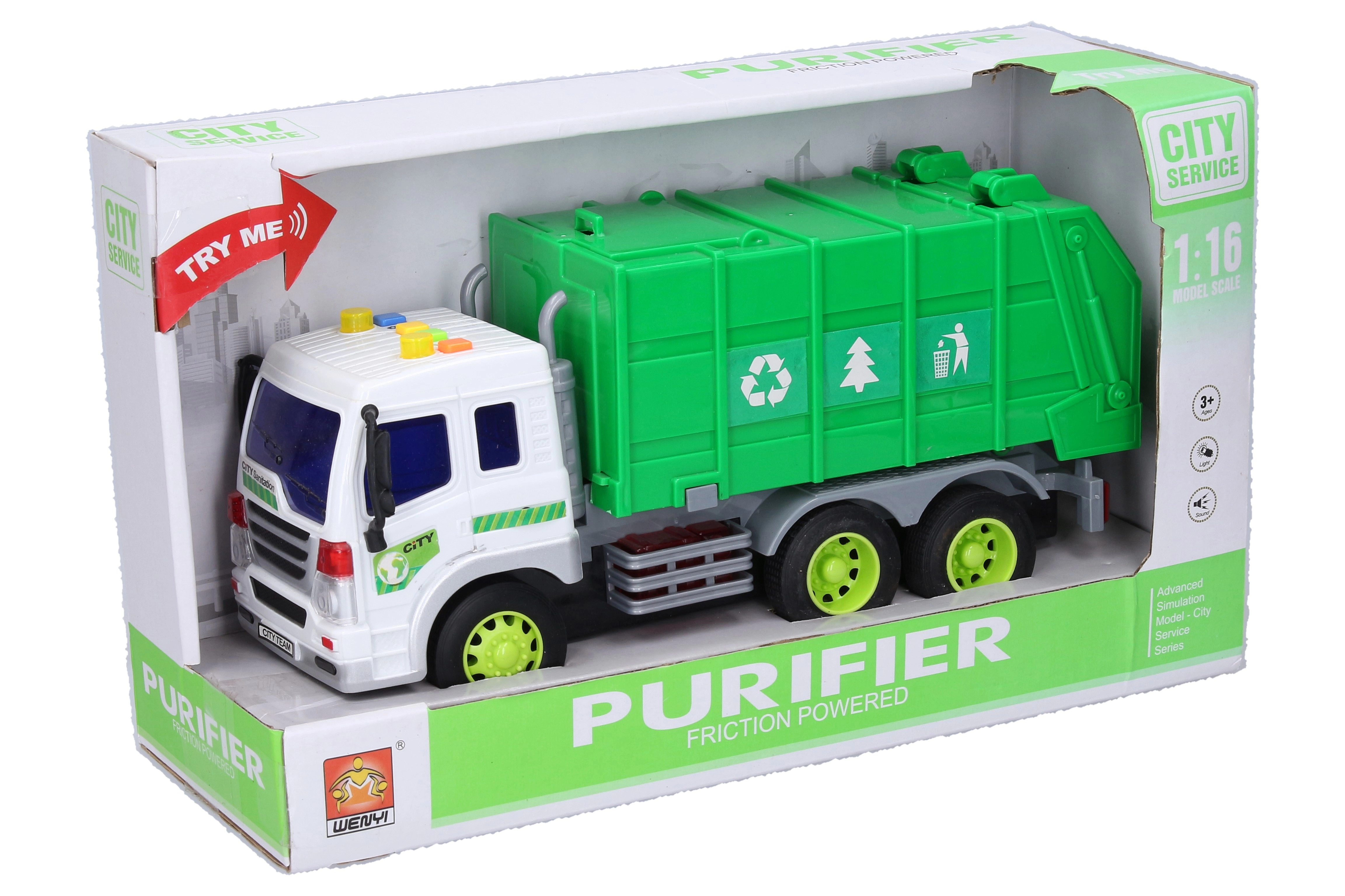Представяме ви играчка, която ще впечатли не само малкия шофьор – сметосъбиращ камион с ефекти. Този камион с дължина 28 см е оборудван с инерционен механизъм, който допринася за по-дълга и по-реалистична игра.