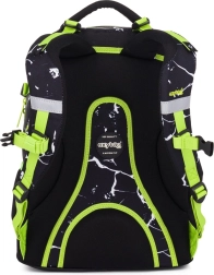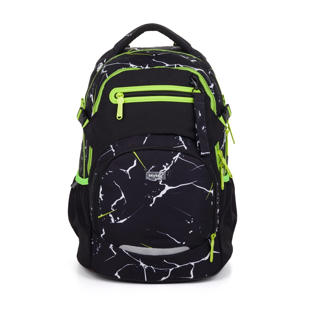 Лека и издръжлива ученическа раница Oxy Ombre Electric за деца от 3. клас, комбинираща анатомично оформен гръб, подплатени презрамки и гръден колан за удобно носене. Предлага два просторни отделения, странични джобове за бутилка, практично предно джобче за закуска и безопасни рефлекторни елементи. Здравото дъно осигурява стабилност при оставяне.